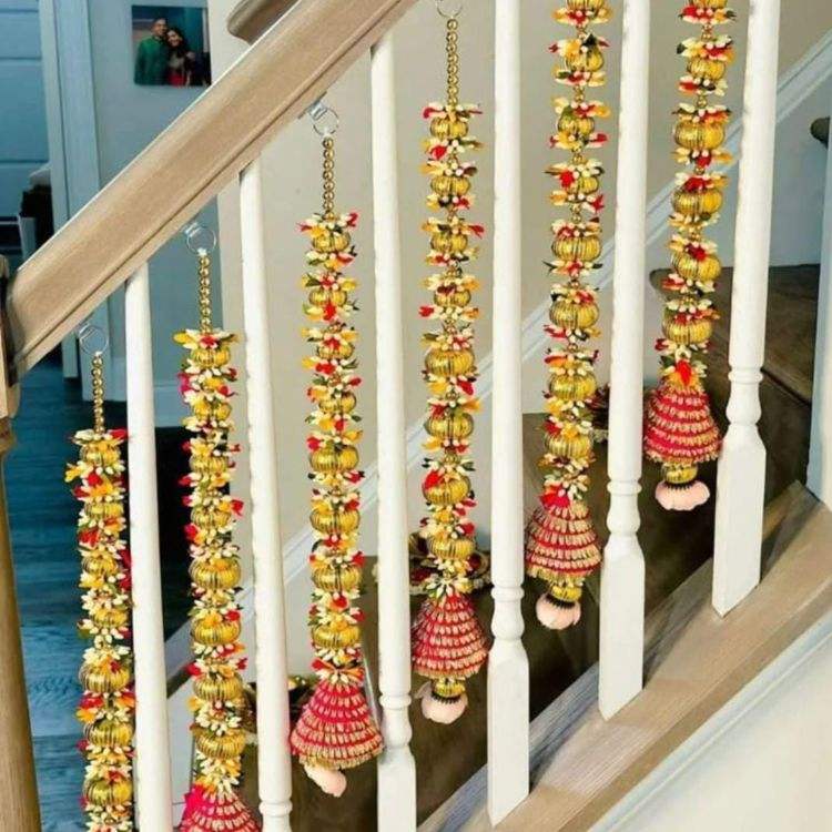 ของตกแต่งบ้านแบบดั้งเดิมของชาวอินเดียสายดอกไม้ประดิษฐ์สำหรับงานแต่งงานงานปาร์ตี้และฉากหลังเทศกาล