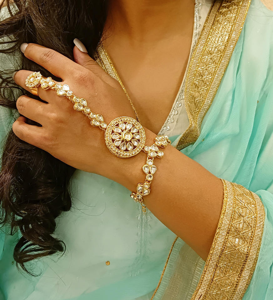 แหวนสวมนิ้วประดับคริสตัลแบบดั้งเดิมของอินเดียสำหรับผู้หญิงสร้อยข้อมือเจ้าสาวผู้ผลิตในอินเดียขายส่ง
