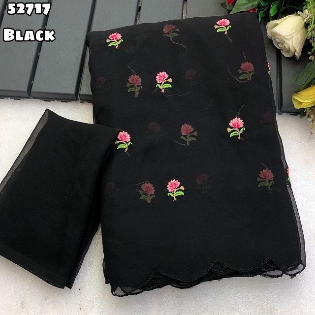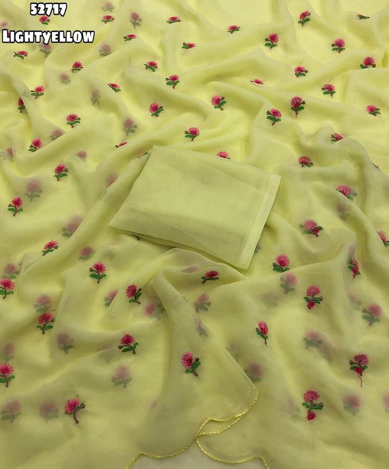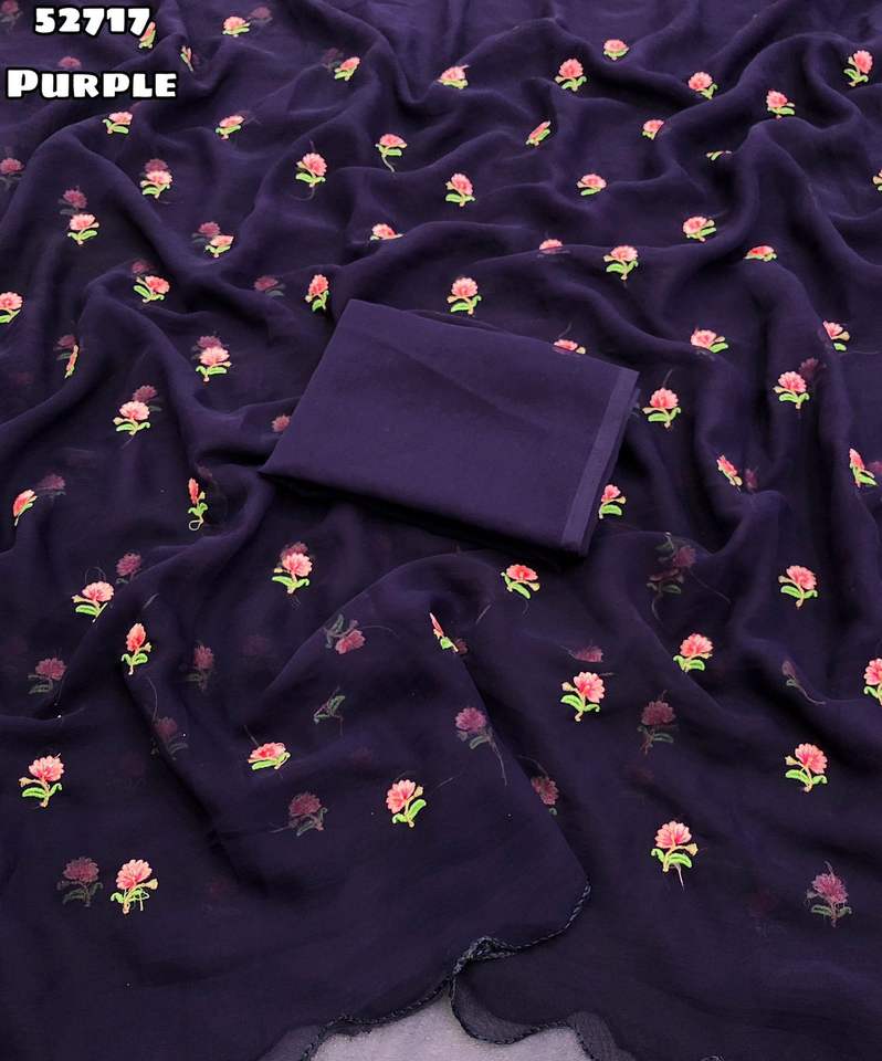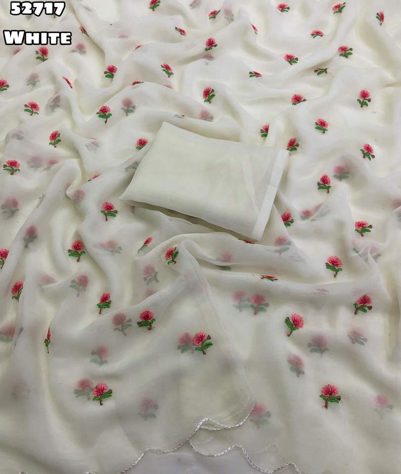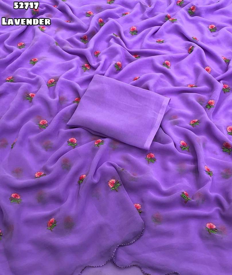 ผ้าซารีผ้าไหมจอร์เจียต์แท้แบบดั้งเดิมของอินเดียสำหรับผู้หญิง ดีไซน์ล่าสุด พร้อมงานปักลายบุตติทั่วผืน มีสินค้าในสต็อก