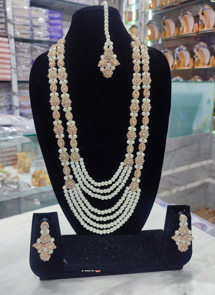 ชุดเครื่องประดับมาลาแบบอินเดียโบราณ ชุบทอง 18K สร้อยคอพร้อมต่างหูและมงกุฎติกก้า ดีไซน์ทันสมัยสไตล์ชาติพันธุ์