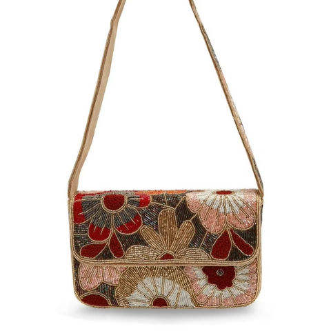 กระเป๋าถือหรูหราแบบดั้งเดิมของอินเดีย ประดับด้วยคริสตัลหลากสีและลูกปัดแก้ว งานฝีมือทนทาน คุณภาพพรีเมียม ทรงบาแกตต์ เครื่องประดับแฟชั่น