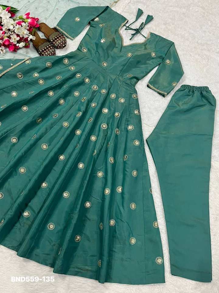 ผู้ผลิตชุดอานาร์กาลีผ้าไหมซิมมาร์แบบดั้งเดิมของอินเดีย พร้อมงานปักเลื่อมและงานปักลาย จากเมืองสุรัต