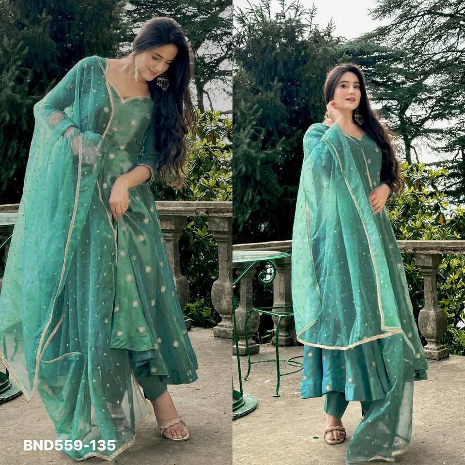 ชื่อสินค้า:ชุดอนาร์กาลีผ้าไหมซิมมาร์ ประดับเลื่อมและงานปัก