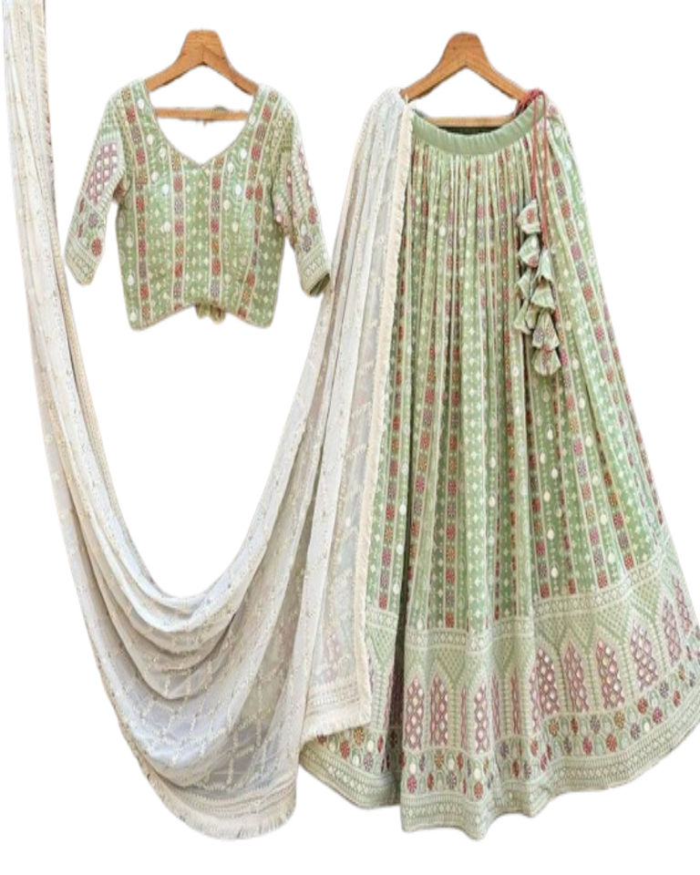 Product Name:Wedding Partywear Sequins & Mirror Embroidery Heavy Lehenga Choli