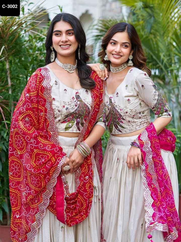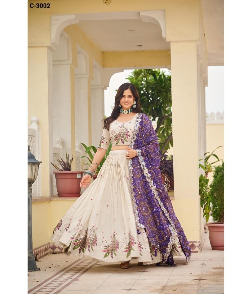 ชุดเลเฮนกาโชลีผ้าไหมแท้แบบดั้งเดิมของอินเดีย พร้อมงานปักเลื่อมและงานปักด้ายอย่างประณีต พร้อมเสื้อสำเร็จรูป