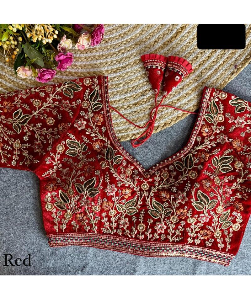 เสื้อเบลาส์ผ้ากำมะหยี่เนื้อนุ่มแบบอินเดียสำหรับชุดเจ้าสาวส่าหรีและเลฮิงกา