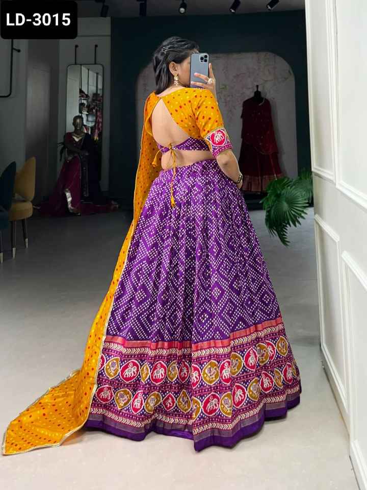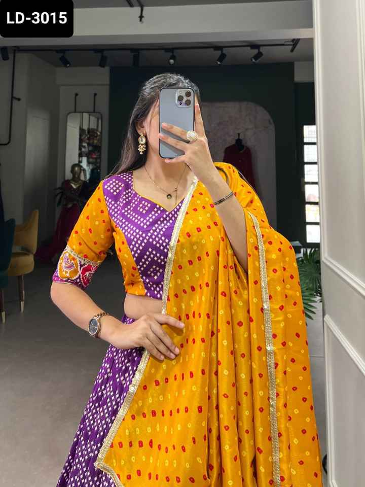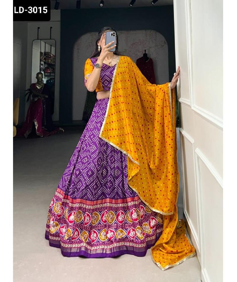 Lehenga choli ผ้าไหมทัสซาร์แบบดั้งเดิมอินเดียที่มี dola Silk กับพิมพ์ bandhej ด้วยลูกไม้ขอบ dupatta สำหรับงานเทศกาล