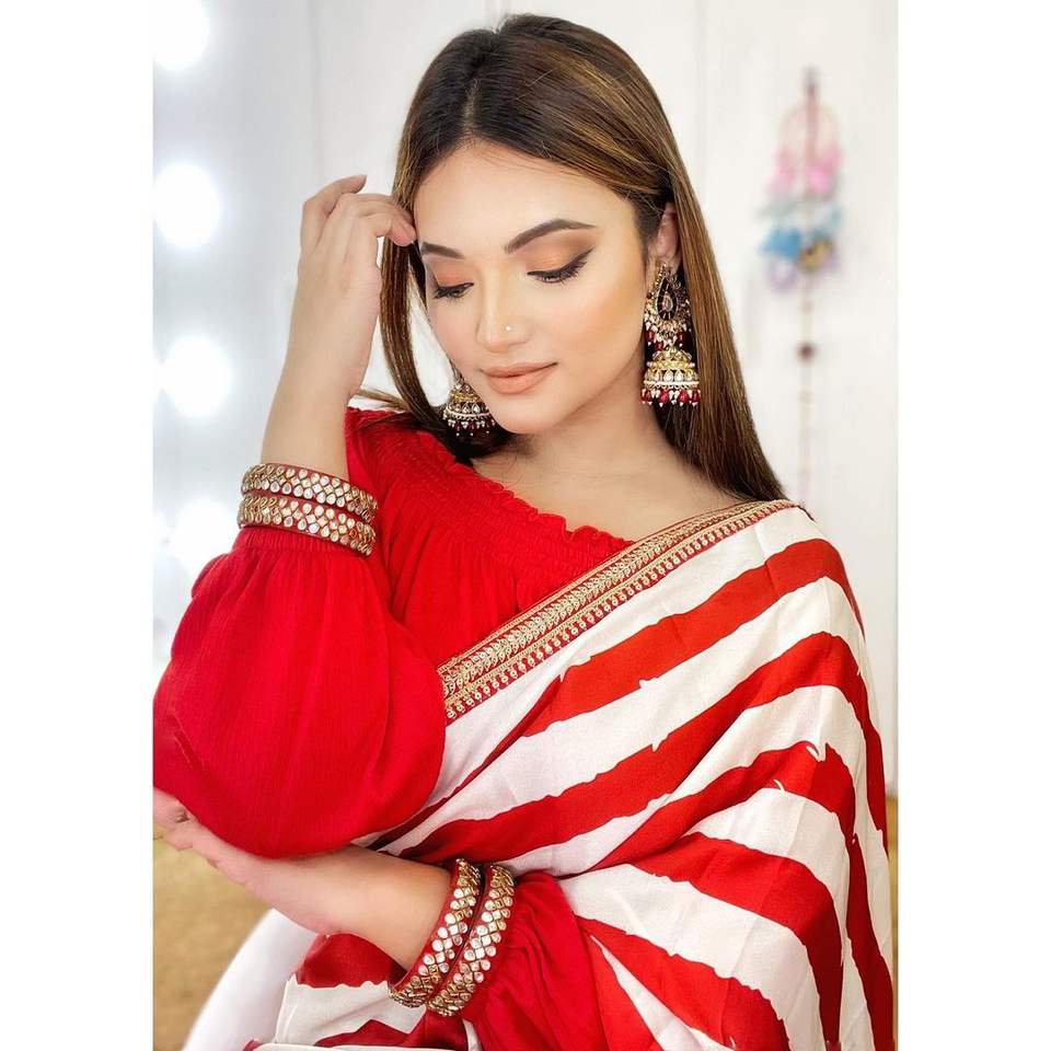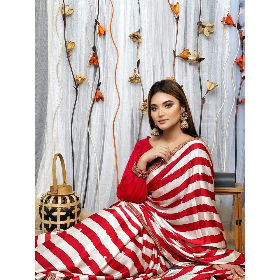 อินเดียแนวโน้มที่สวยงามน่าสนใจสีขาวสีแดงพรรคเทศกาลสวมใส่ผ้าไหมพิมพ์ดิจิตอลสารีสำหรับสุภาพสตรีจากตลาดอินเดีย