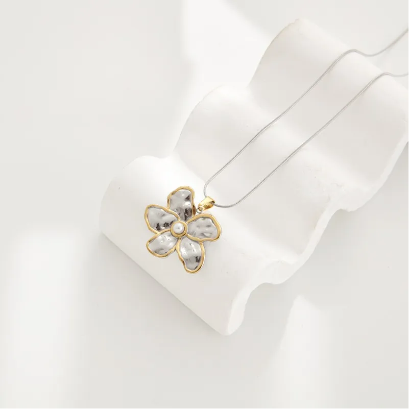 สร้อยคอเงินทองทูโทนทันสมัยแนวพังค์อินเดียกันน้ำสายสแตนเลสลายงูดอกไม้เงินแฟชั่น