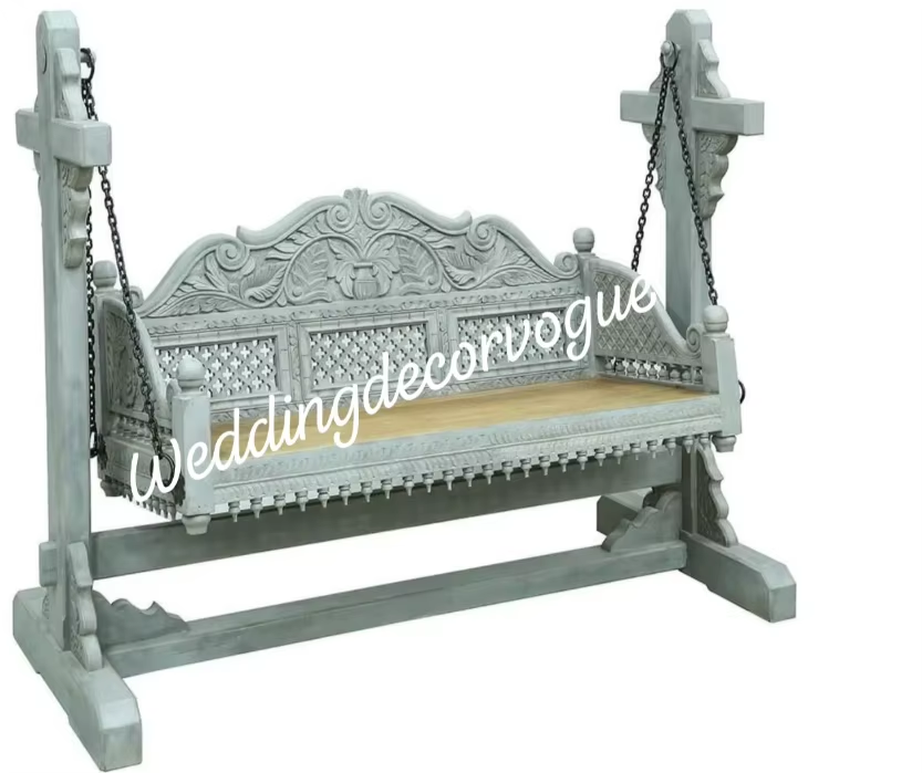 ชิงช้าตกแต่งสไตล์วินเทจแบบวินเทจไม้เนื้อแข็งแกะสลักราชวงศ์ rajasthani jhoola เหมาะสำหรับปาร์ตี้งานแต่งงานงานอินเดีย