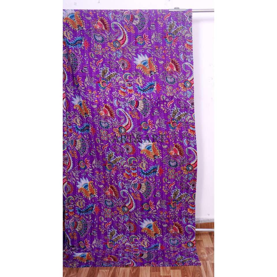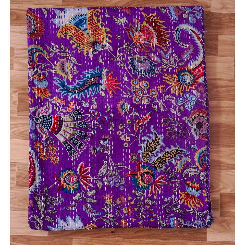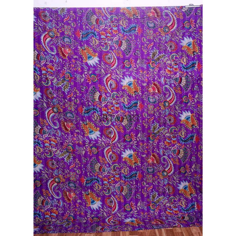 Indian Vintage Cotton Kantha Quilts Wholesaler purple Color Printed Blankets Handmade Kantha Throws for Home Decoration