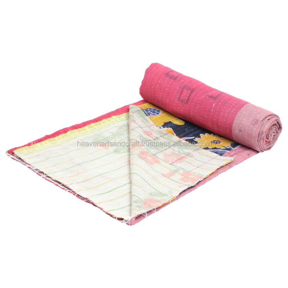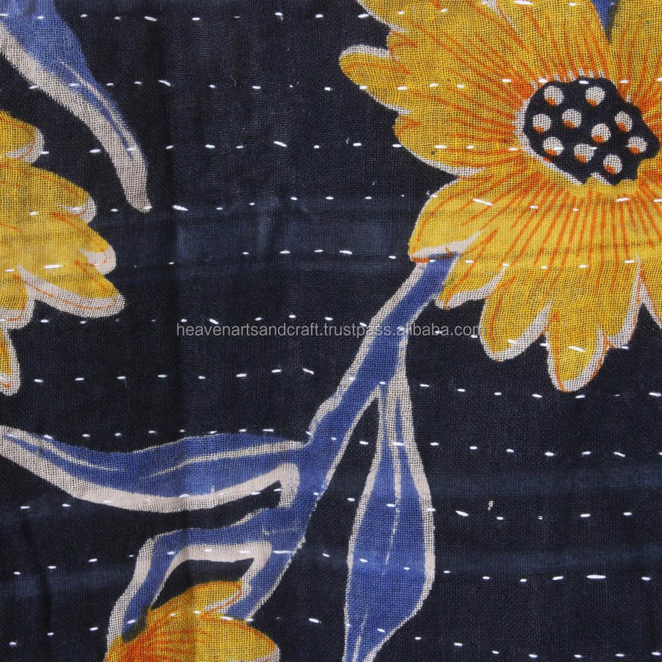 ผ้านวมคอตตอนสไตล์อินเดียวินเทจผ้าแคนธา GD070ผ้านวมใส่กลับด้านได้แบบอินเดีย