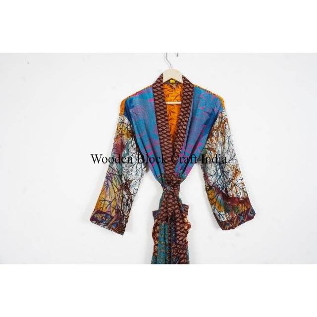 ชุดกิโมโนผ้าไหมลายดอกไม้สไตล์อินเดียโบราณสำหรับผู้หญิง ชุดชายหาดรีไซเคิลสำหรับฤดูร้อนและฤดูใบไม้ผลิ