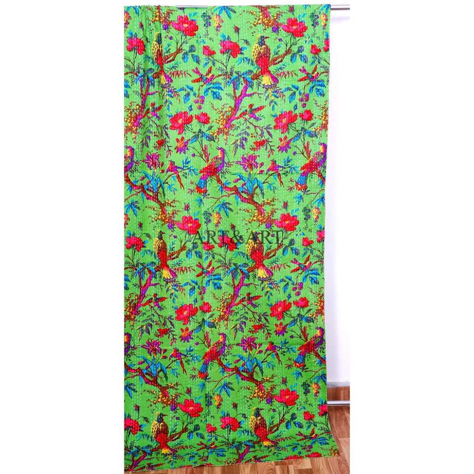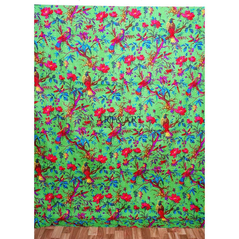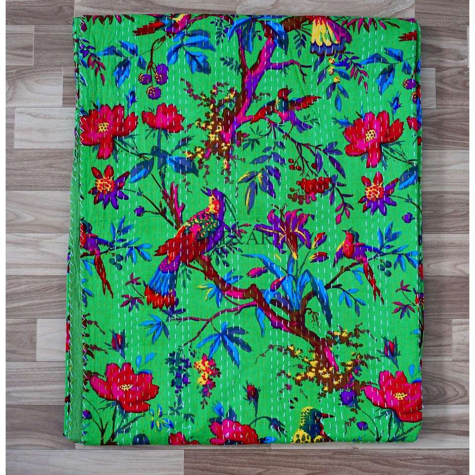 ผ้าห่มคันธาอินเดียทำมือแบบวินเทจ ผ้าฝ้ายแท้ ใช้ได้สองด้าน ขนาดเตียงคู่ ออร์แกนิค สำหรับบ้านสมัยใหม่ โรงแรม และเตียงนอน