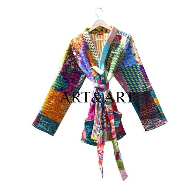 Indian Vintage Quilted Jacket Printed Knitted Cotton Women's Handmade Kimono Reversible Eco-Friendly Party Wear