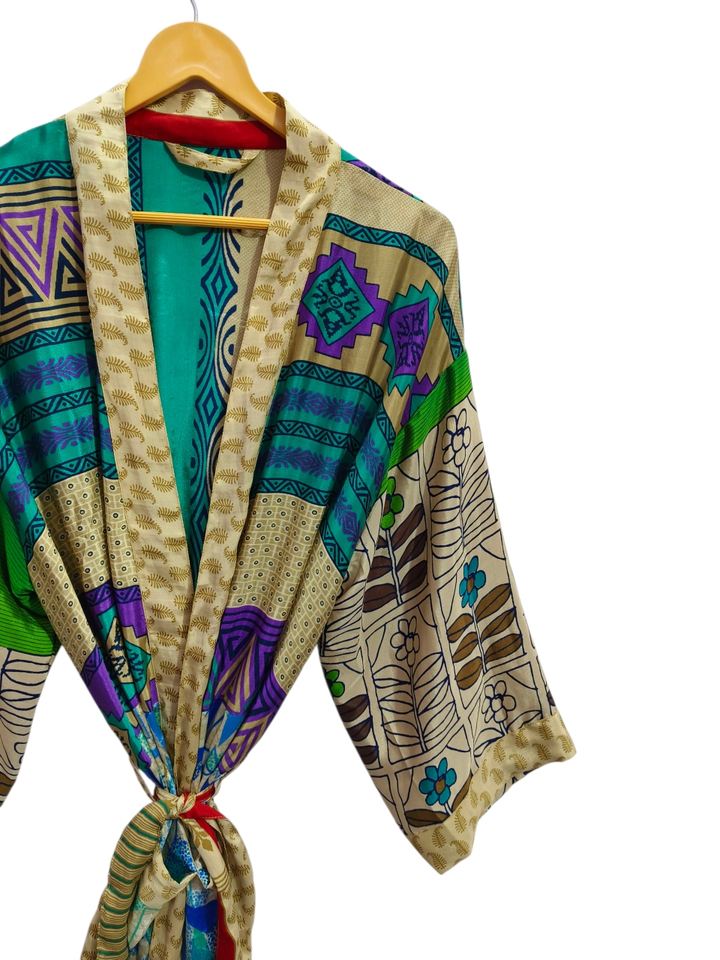 ชุดกิโมโนผ้าไหมลายส่าหรีวินเทจของอินเดียเสื้อคลุมอาบน้ำผ้าไหมเนื้อนุ่มเย็บติดกันชุดกลางคืนหลากสีใส่สบายใส่ในบ้าน