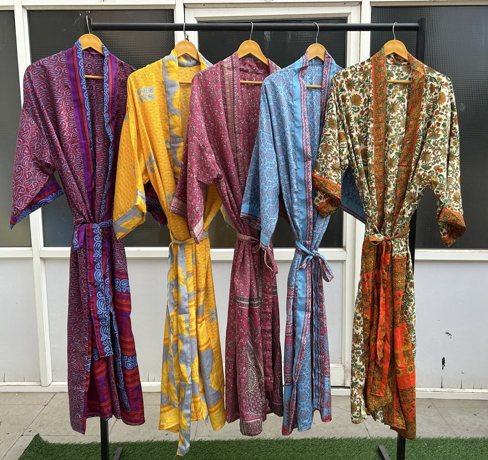 ชุดกิโมโนผ้าไหมซารีอินเดียวินเทจขายส่งแบบรีไซเคิลสำหรับผู้หญิง