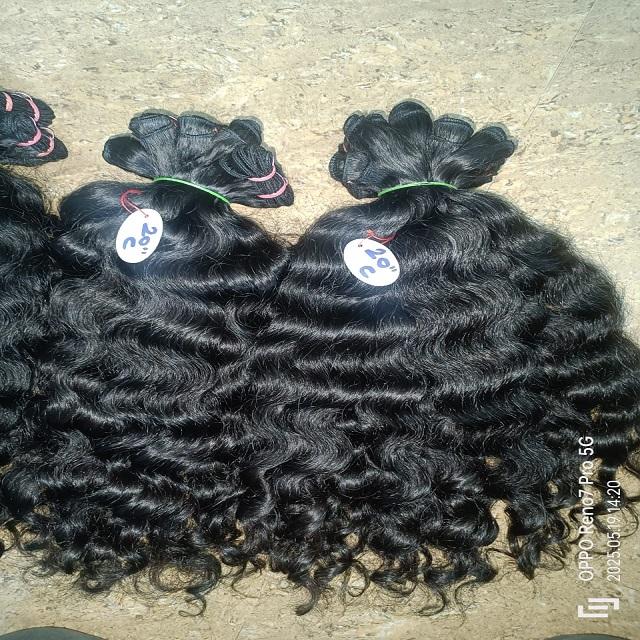 ผมต่อจากผมมนุษย์บริสุทธิ์จากอินเดียเป็นกลุ่มผมต่อแบบหยาบหลวมเรียงกันเป็นลอนหยิกยาว26-28นิ้ว