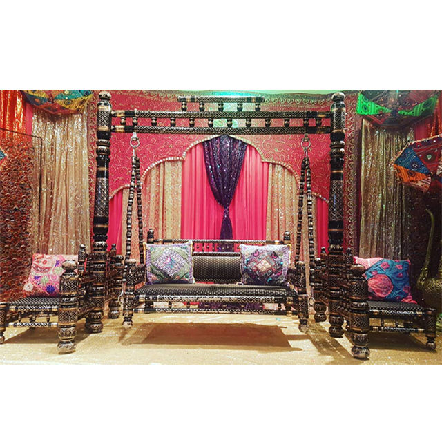 Jhoola สีดำทองงานแต่งงานอินเดียสำหรับ Mehndi ตกแต่งแกว่งสดใสสำหรับตกแต่งเวทีงานแต่งงานที่น่าทึ่ง mejhoola ชุด