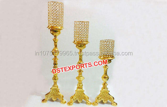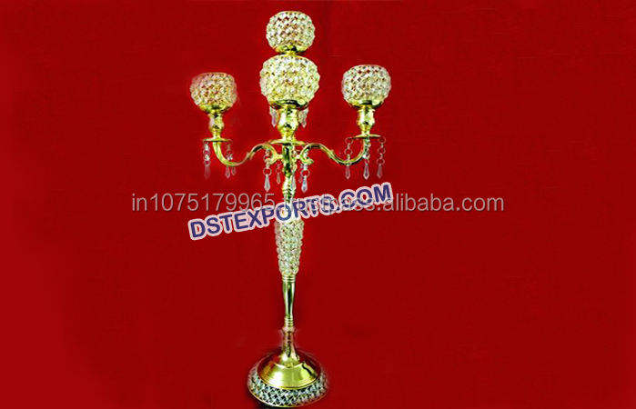 เชิงเทียนงานแต่งงานอินเดียแบบฉลุลาย ทนทาน ทำจากคริสตัลและโลหะ พร้อมขนาดที่ปรับแต่งได้ สำหรับตกแต่งโต๊ะกลางในพิธีแต่งงานแบบราชวงศ์