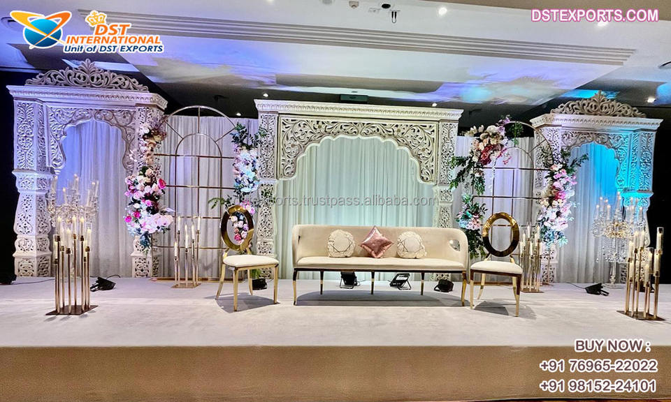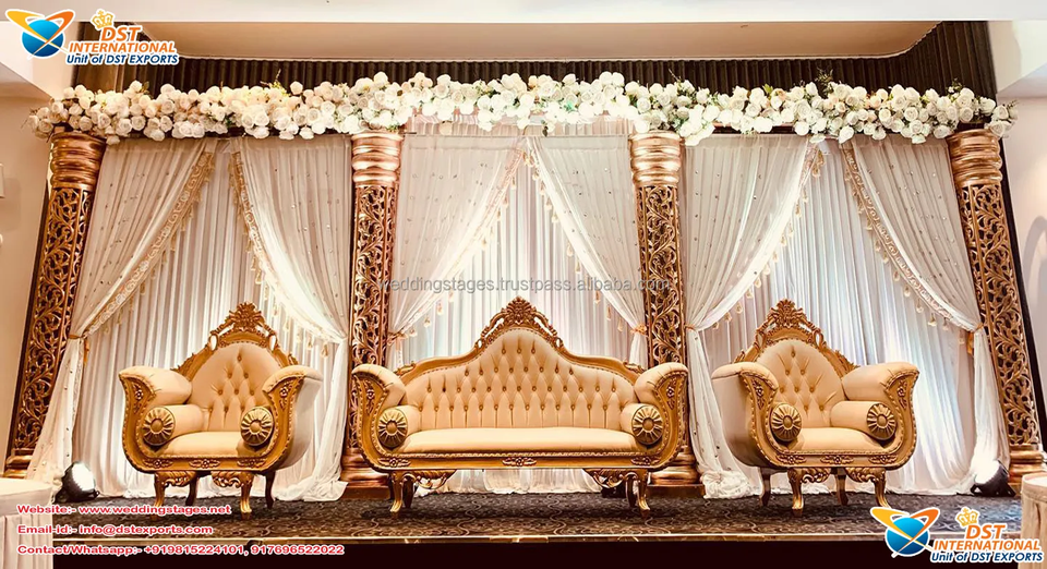 การจัดเวทีงานหมั้นแบบอินเดีย การตกแต่งเวทีงานแต่งงานแบบดั้งเดิมของอินเดีย การตกแต่งเวทีงานแต่งงานสไตล์ราชวัตตาสหรัฐอเมริกา