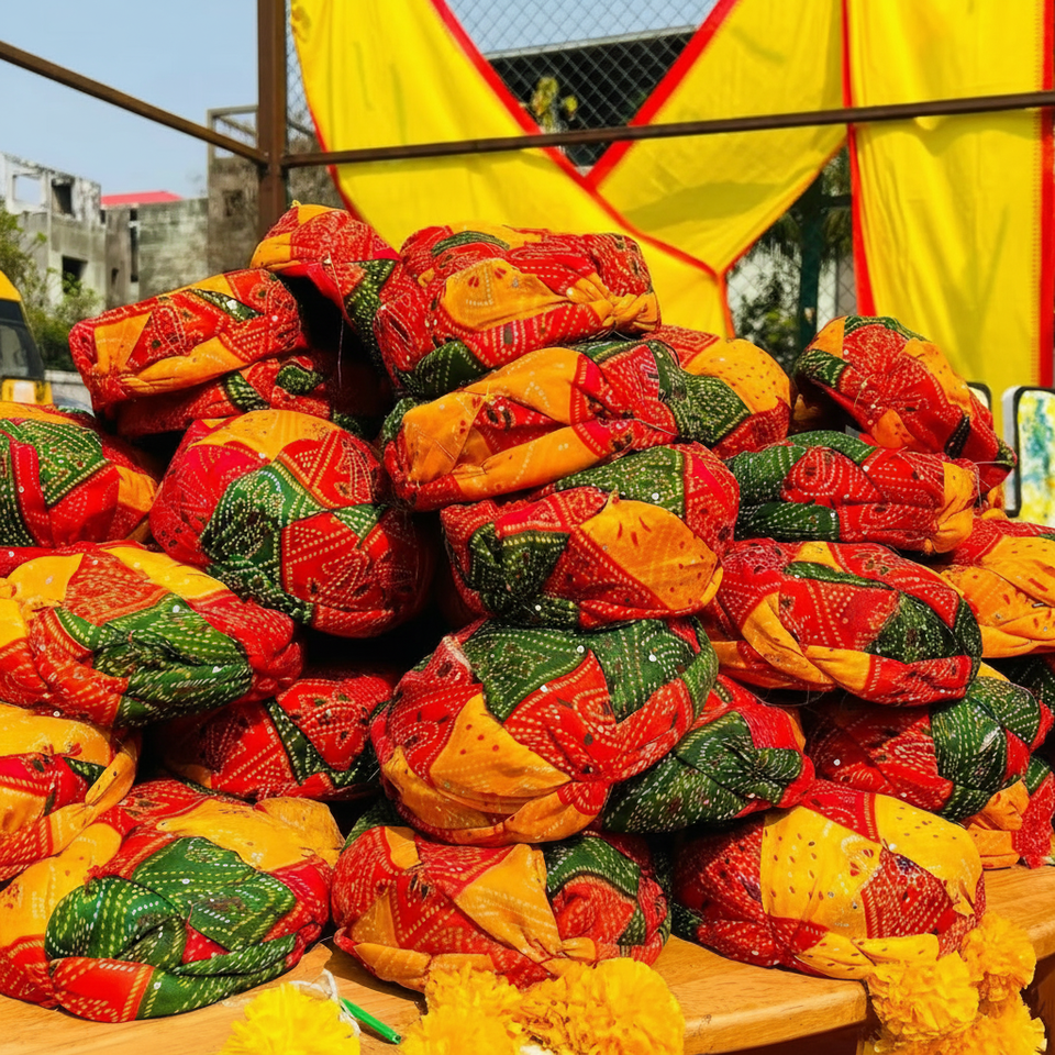 ผ้าโพกหัวราชสถานแบบสำเร็จรูป พร้อมแถบเวลโคร สำหรับเทศกาลนาวราตรี ซาฟา โฮลี