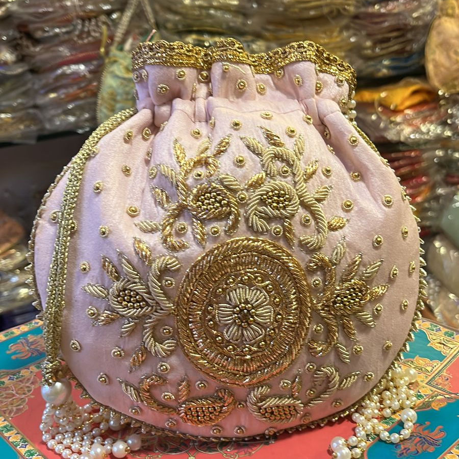 กระเป๋าผ้าคลัทช์สำหรับผู้หญิงงานแต่งงานงานปักพื้นเมืองทำด้วยมือคุณภาพสูงกับงาน zari potli