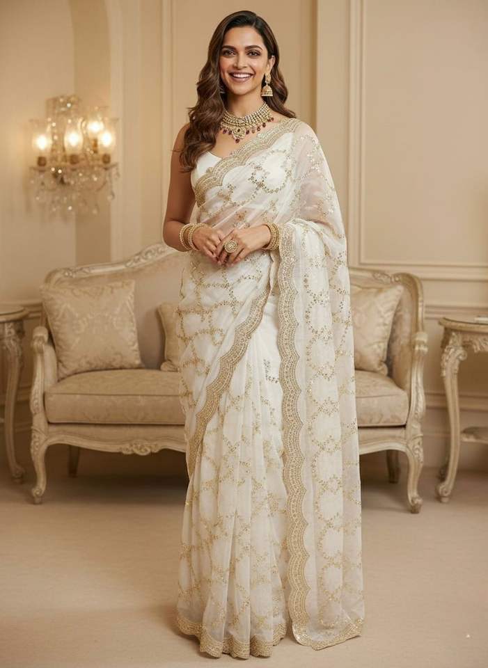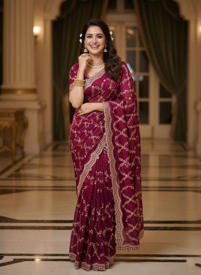 ชุดแต่งงานอินเดีย ผ้าไหมเนื้อนุ่มแบบสเปซซิลค์ พร้อมงานปักเลื่อมลูกไม้ดีไซน์เนอร์ ขอบผ้าปักลายฉลุ สำหรับผู้หญิงอินเดีย มีสินค้าพร้อมส่ง