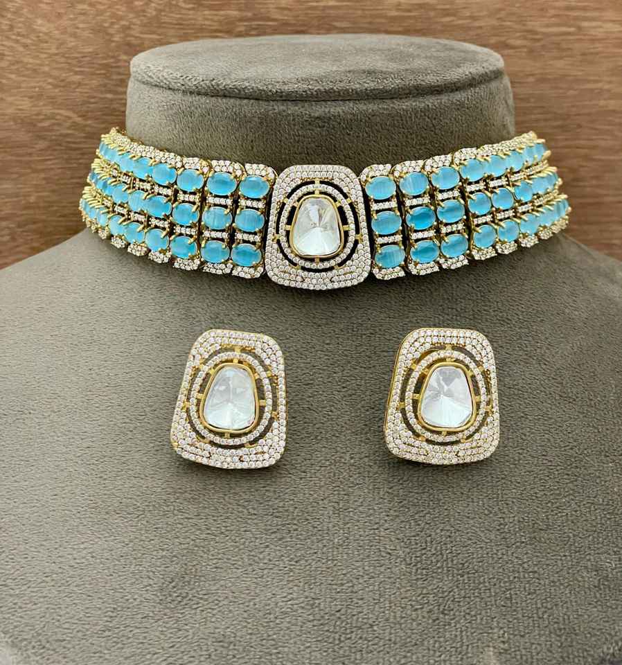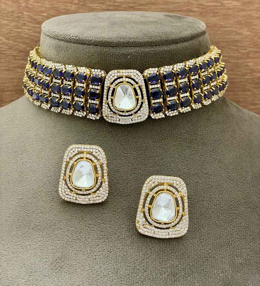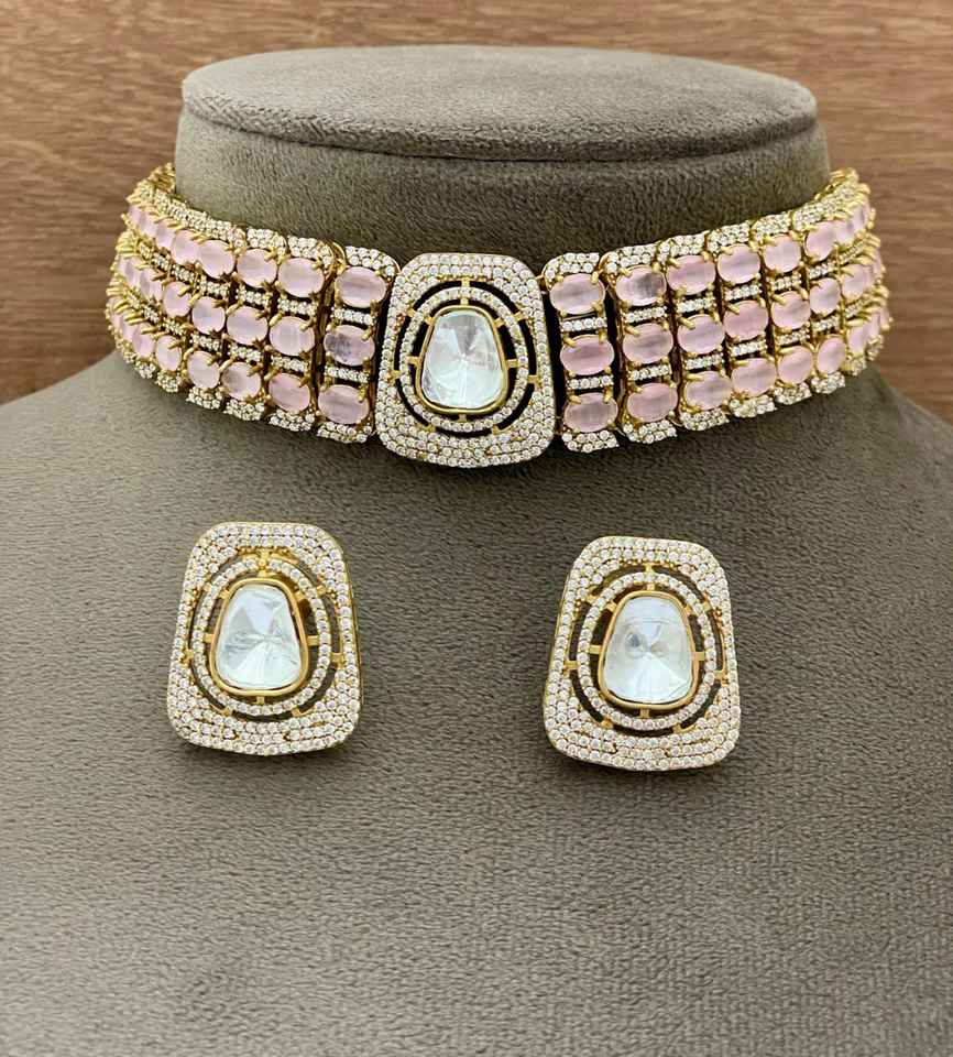 สร้อยคอโชคเกอร์ Kundan สำหรับผู้หญิงงานแต่งงานแบบอินเดียเครื่องประดับเจ้าสาวสร้อยคอลายจุดแบบดั้งเดิม