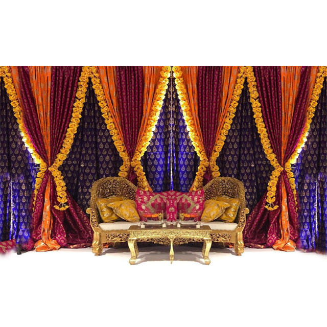งานแต่งอินเดีย Zari Backdrops พิธี Mehndi ที่สวยงาม Zari ฉากหลังแต่งงาน Walima Stage Zari