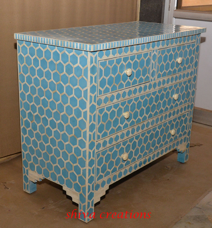 ตู้ลิ้นชักอเนกประสงค์ทำด้วยมือสไตล์อินเดียสำหรับห้องนั่งเล่นห้องครัว