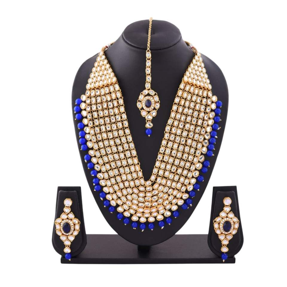 Design:Indian traditional kundan multi layered stranded necklace earring