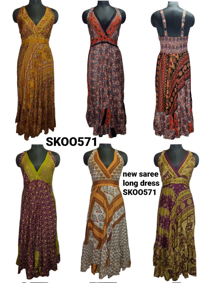 ชุดเดรสผ้าไหมส่าหรีแบบใหม่ของอินเดียชุดเดรสซักได้ยาวถึงพื้นพิมพ์ลายดอกไม้สีสันสดใสมีสไตล์
