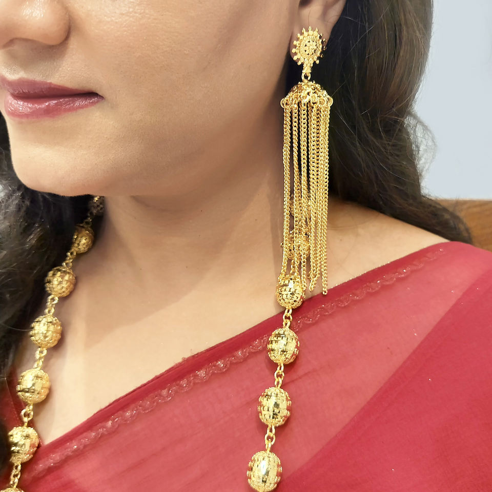 คุณสมบัติ:ประดับด้วยฟิลิกรีโซ่หลายชั้นลูกปัดโลหะขนาดใหญ่