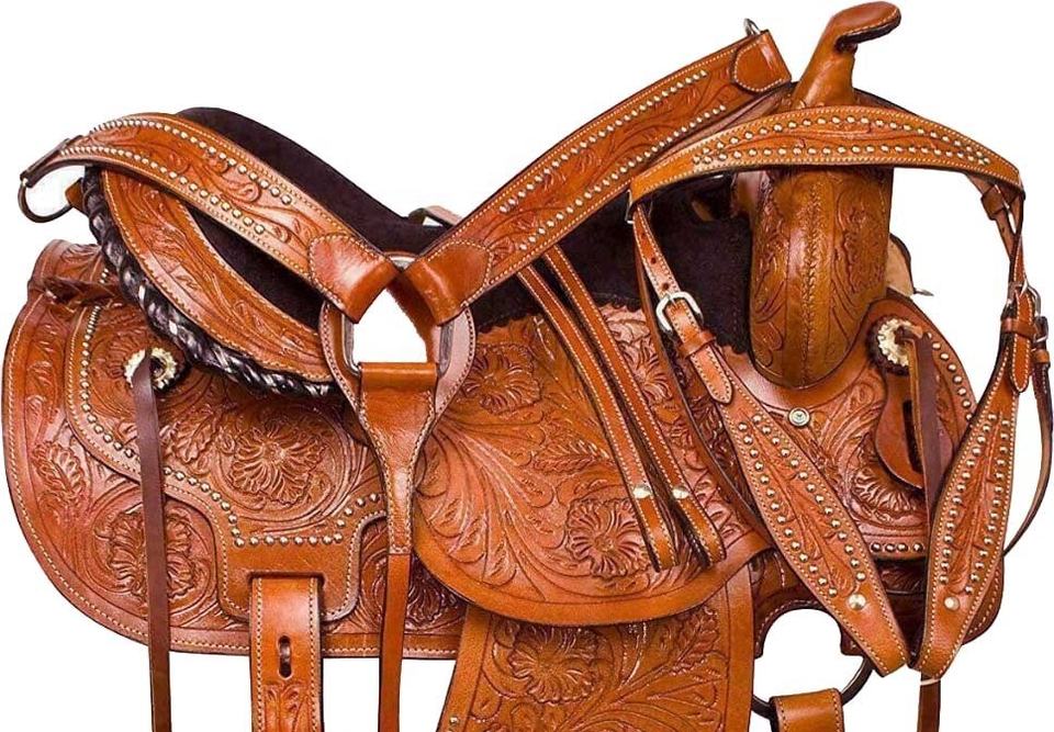 อานตะวันตกคุณภาพสูงพร้อมเบาะหนังกลับสีดำทำจากหนังคุณภาพดีพร้อมต้นไม้พลาสติกที่แข็งแรง (pccp) ใช้มือและแกะสลักด้วยแผงหัวตะวันตกและแผ่นอกที่เข้ากัน Conchos เงิน