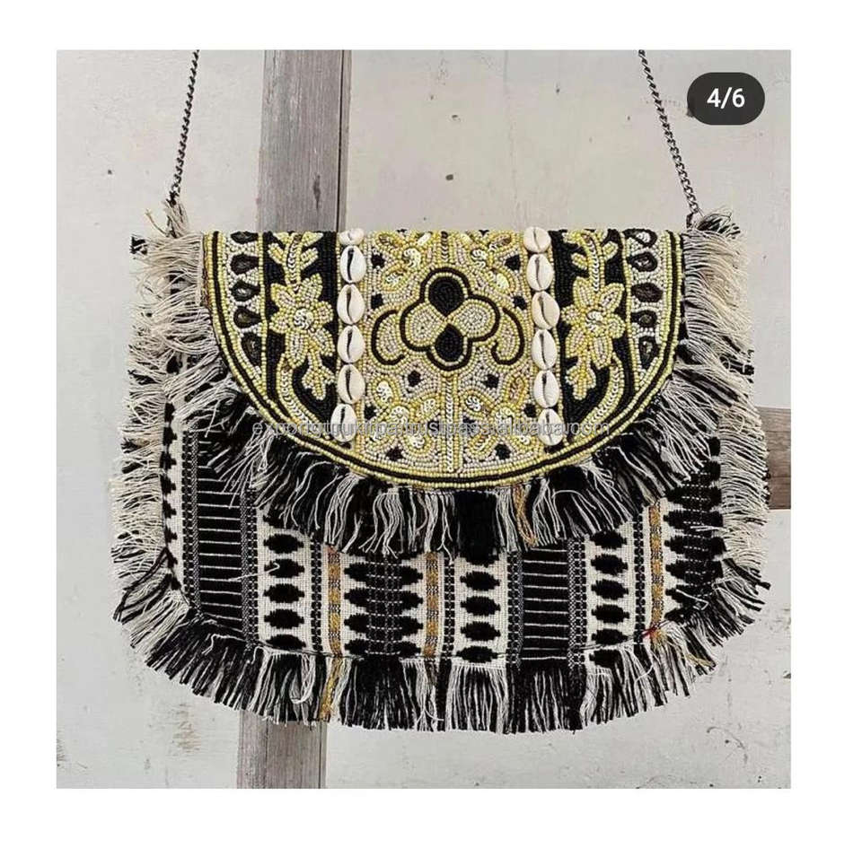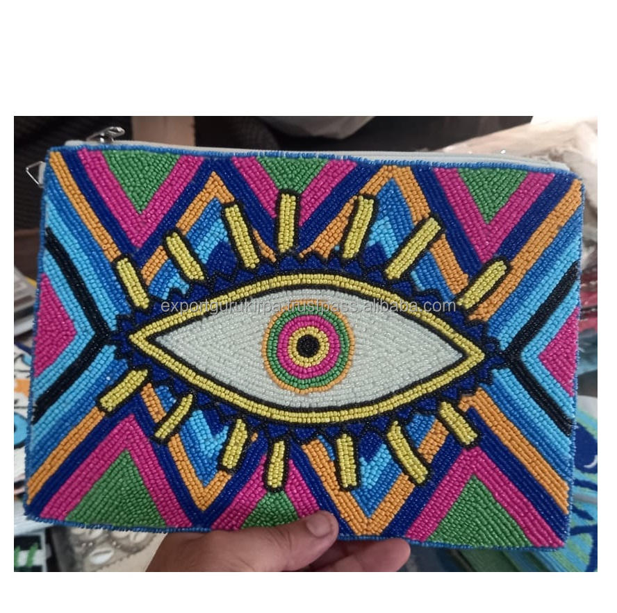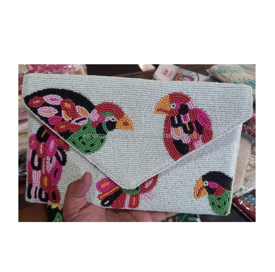 กระเป๋าคลัทช์ลูกปัดแบบแฮนด์เมดสำหรับผู้หญิงออกแบบโดยดีไซเนอร์ชาวอินเดียกระเป๋าคลัทช์สำหรับงานปาร์ตี้ตอนเย็นสไตล์โบฮีเมียนขายส่ง