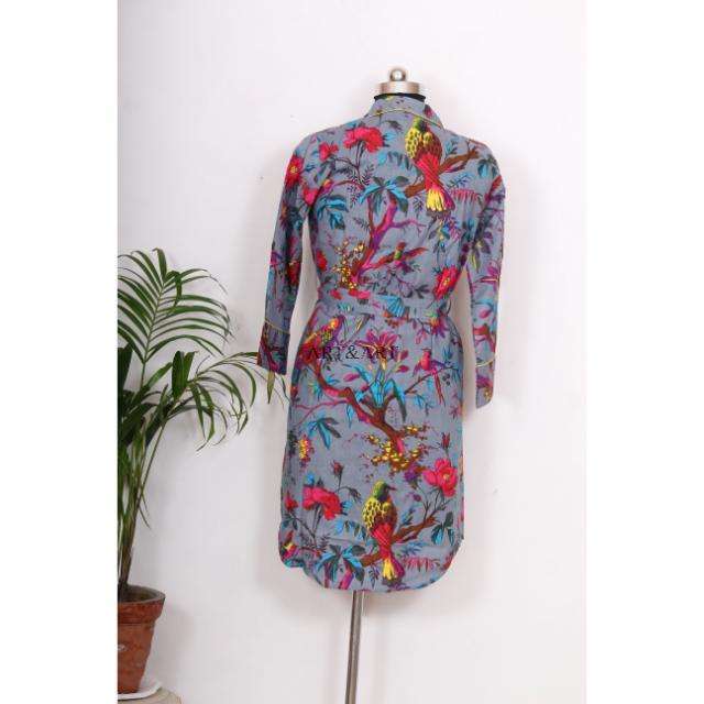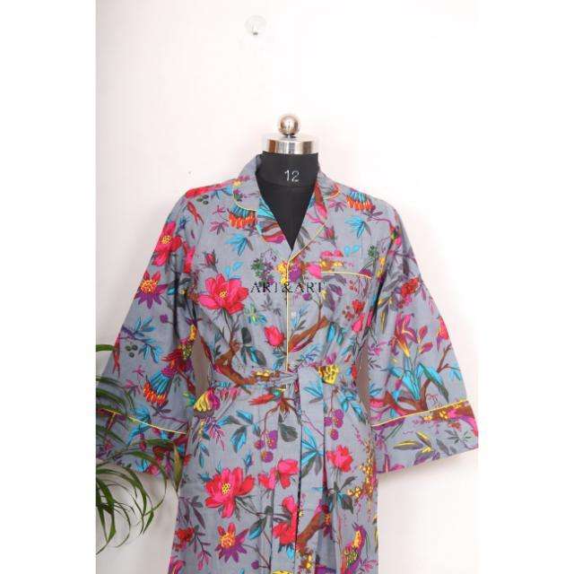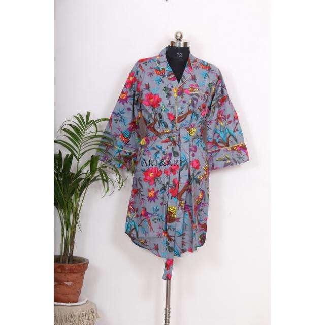 เสื้อคลุมกิโมโนสไตล์โบฮีเมียนสำหรับผู้หญิงอินเดีย ความยาวปานกลาง ผ้าฝ้ายอย่างดี ใช้เป็นชุดนอนได้ มีสายผูกตกแต่งกระดุม ดีไซน์หวานๆ ทรงหลวม