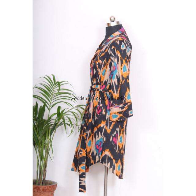 ชุดกิโมโนสไตล์โบฮีเมียนสำหรับผู้หญิงอินเดีย ความยาวปานกลาง เสื้อเชิ้ตยาว ผ้าฝ้ายอย่างดี ชุดนอนผูกเอว แต่งกระดุม ดีไซน์หวาน ทรงหลวม