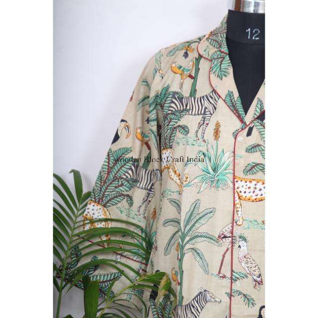 Indian Women's Bohemian Mid-Length Maxi Kimono Shirt Stylish Cotton Sleepwear Tie Belt Button Decoration Sweet Loose Fit