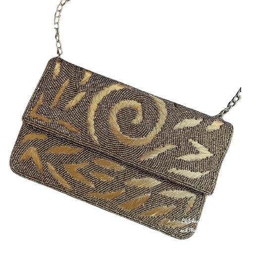 กระเป๋าคลัทช์สะพายไหล่สไตล์โบฮีเมียนประดับลูกปัดสำหรับผู้หญิงอินเดีย กระเป๋าถือสำหรับงานปาร์ตี้ช้อปปิ้งตอนเย็น กระเป๋าสะพายข้างแบบมีซิปปิดทำมือ