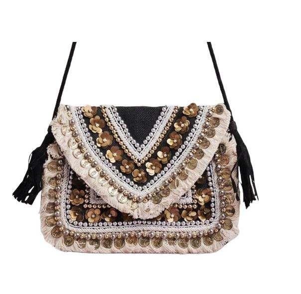 กระเป๋าคลัทช์สะพายไหล่ประดับลูกปัดดีไซน์เนอร์สำหรับผู้หญิงอินเดียกระเป๋าถือสไตล์โบฮีเมียนสำหรับงานปาร์ตี้ตอนเย็น-ขายส่ง
