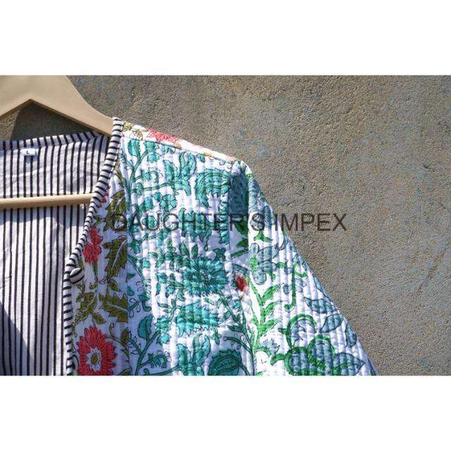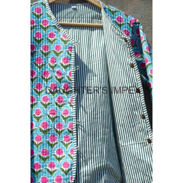 เสื้อแจ็คเก็ตสไตล์วินเทจแบบสั้นสำหรับผู้หญิงอินเดีย ผ้าฝ้ายถักลายพิมพ์บล็อกด้วยมือ ตกแต่งกระเป๋า ลายดอกไม้สีชมพู