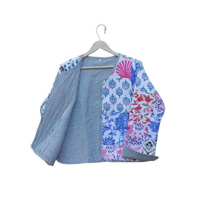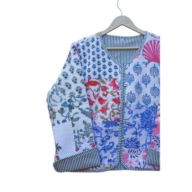Indian Women's Quilted Jacket 100% Organic Cotton Breathable Eco-Friendly Block Printed Handmade Holiday Gift Covered Button