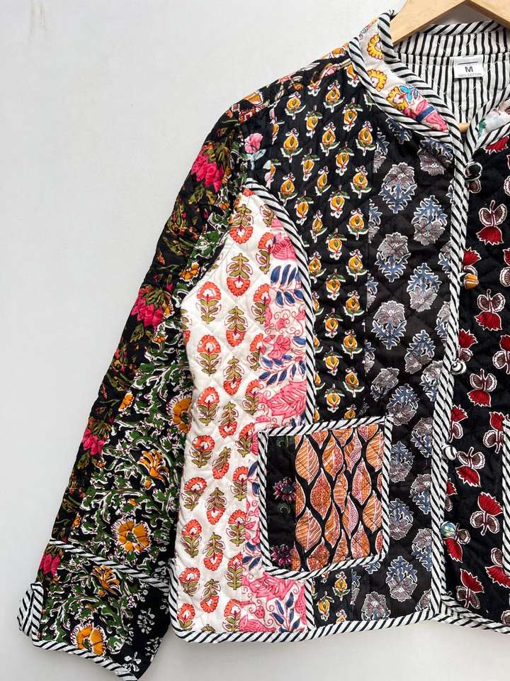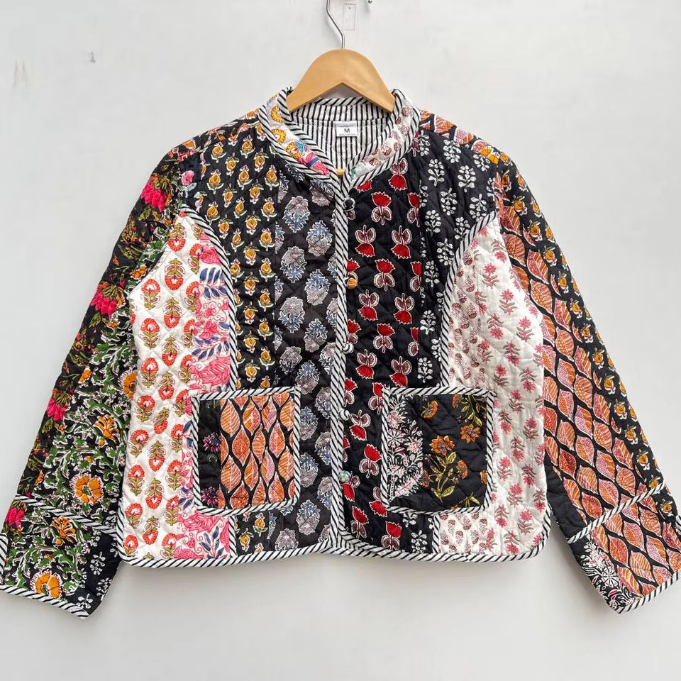 เสื้อโค้ทผ้าปะต่อสำหรับผู้หญิงสไตล์โบฮีเมียนเสื้อโค้ทลำลองแบบปะต่อสำหรับผู้หญิงอินเดียใส่ได้ทุกฤดู