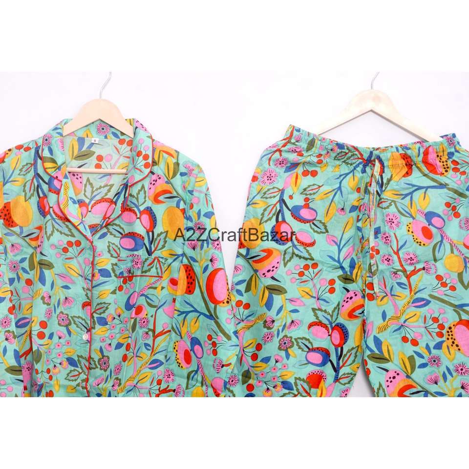ชุดนอนผ้าฝ้ายยาวสำหรับฤดูร้อนของผู้หญิงอินเดีย ปิดด้วยเชือกผูก ลายดอกไม้ ผ้าถักระบายอากาศได้ดี นุ่ม แห้งเร็ว