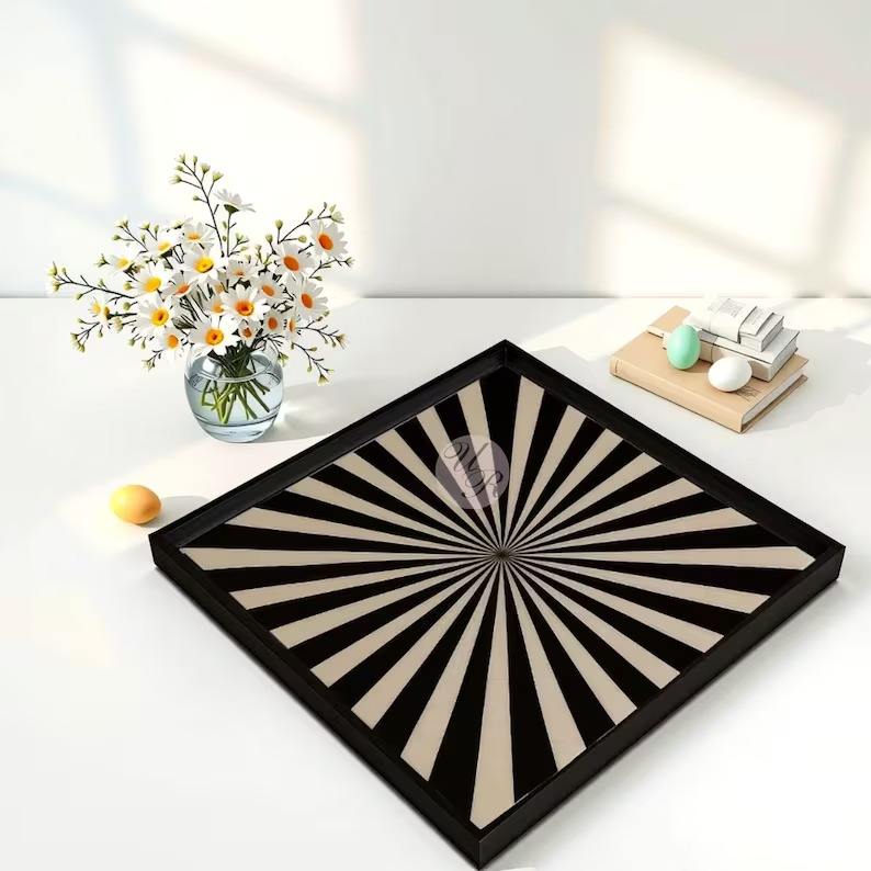 ถาดไม้ตกแต่งสไตล์อินเดีย ลายอาร์ตเดโค ลายผลไม้และดอกไม้ ชุดหลายชิ้น สำหรับตกแต่งบ้านในเทศกาลดีวาลี