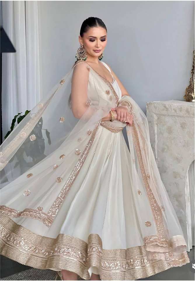 ชุดยาว anarkali สไตล์ปากีสถานปักด้วยผ้าจีนและผ้าไหมขนาดเล็กสำหรับงานปาร์ตี้ในโอกาสต่างๆ