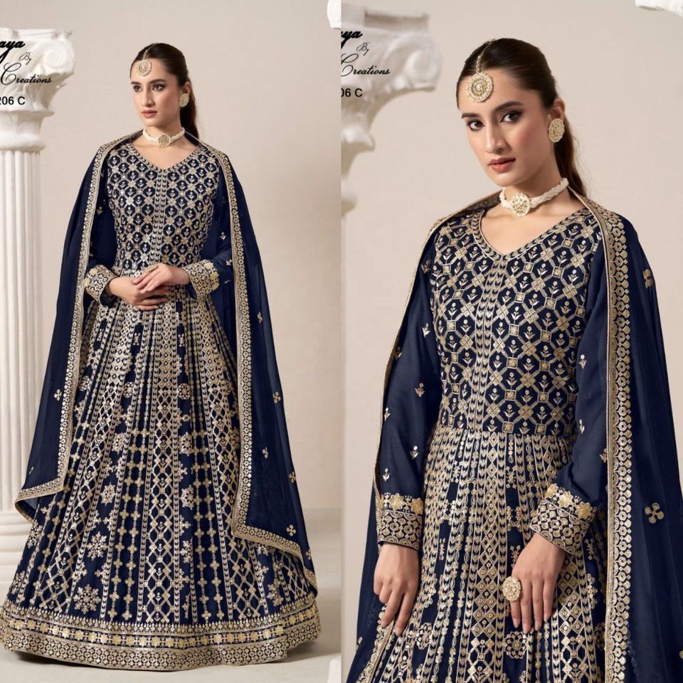 ชุด georgette dupatta ดีไซเนอร์สไตล์อินเดียและปากีสถานสำหรับผู้หญิงทั้งสองข้างมีการปักรหัสและงานแฟนซี
