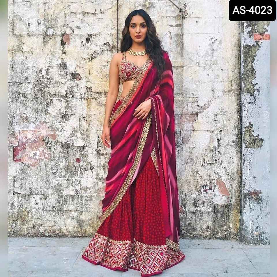 ผ้าซารีสไตล์อินเดียและปากีสถาน ผ้าจอร์เจตต์พิมพ์ลายดิจิทัลหนัก พร้อมงานปักเลื่อม ผ้าซาตินไหมพิมพ์ลายดิจิทัล ขอบลูกไม้