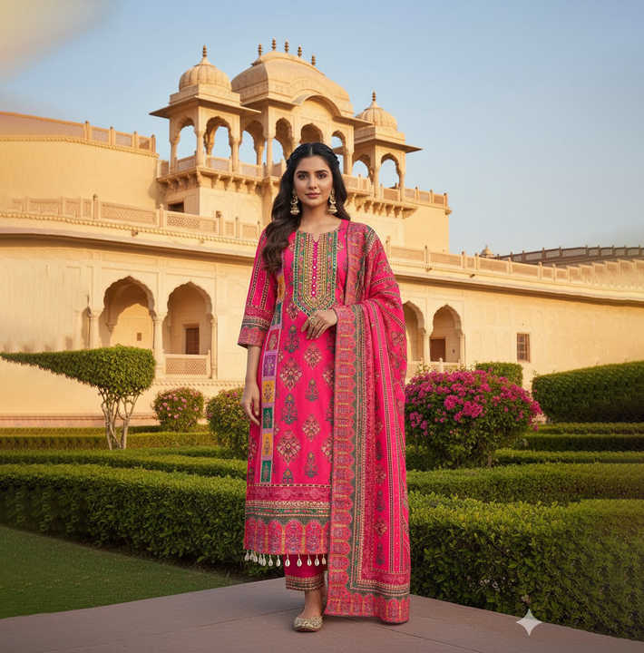 มาสลินสไตล์อินเดียและปากีสถานพร้อมดีไซน์พิมพ์ดิจิตอลและงานกระจกจริงพร้อมขอบลูกไม้หนาทำจาก salwar kameez